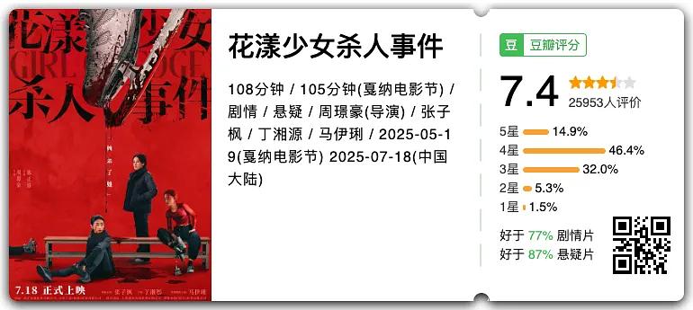7月暑期档的院线电影可以说是百花齐放,无论是喜剧片、动画片,还是好莱坞大片都取得了不错的口碑。不过想在酷暑一解燥热,不得不提这部花滑题材的悬疑惊悚片。 诸如《乔妍的心事》《想飞的女孩》等双女主电影在今天的电影院屡见不鲜,可它们的结局都是评价翻车、惨淡收场。 然而作为新人导演的首作,这部电影先是作为华语电影独苗入围了戛纳电影节的导演双周单元,在国内上映后又取得了豆瓣7.4分的成绩。
