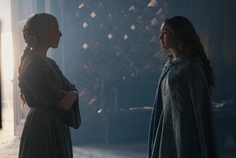 雷妮拉去找阿丽森聊了一次,阿丽森去找雷妮拉聊了一次,这部剧想表达什么,说这两位女主其实不想开战,这世界之所以会大乱,是因为男人的权欲吗?在那些个当下,雷妮拉和阿丽森能改变什么,几乎没有——彼此双方都是泥潭深陷并且欲罢不能,而聊一聊,能聊出什么,注定只能聊一个寂寞。