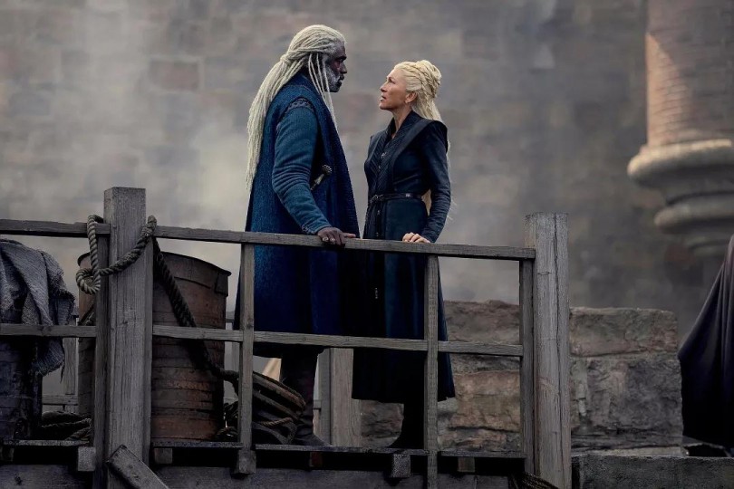 第一季,其实也还好,虽然感觉远不如《权游》,但是至少靠着《权游》所构建的那个宏大的世界观和价值观,全部给看下来,它省事了,我们这些剧迷也同样省事,它不太需要去交待什么背景,我们也不需要再去学习什么新认知,一切都在既定的范围里运转,这挺好。它的故事发生在《权游》世界之前两百年,那时候世界上还有很多龙,甚至还有野生的龙等着你去驯服,所以它甚至可以讲一个比权游更有玄幻色彩的故事。看下来之后感觉,它的视角似乎比权游要窄得多,虽然它也讲七大国,也讲几大家族,但是主线几乎只放在雷妮拉一个人身上,虽然也有其它支线发展,但它的支线显然太弱,远远不及《权游》的宏大。