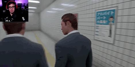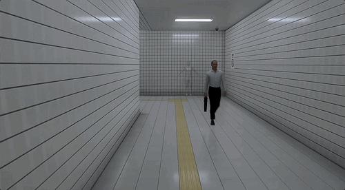 但男主走到尽头之后,却发现还是同样的地下道,同样的标识,同样的白衬衫大叔——