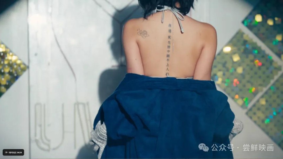 当她褪去浴袍,露出她标志性的纹身时台下已经沸腾~大家为这位新人喝彩在这里,我必须重审下这艺术的纹身:“在现实生活中 追不上别人也是可以的‘’